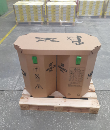 Одним из таких экологических решений стала упаковка сварочной проволоки Marathon Pact. Теперь при изготовлении упаковки будет использован бурый картон. Материал разработан на основе переработанных материалов, которые могут быть полностью утилизированы. Кроме этого, картонная шестигранная упаковка легко складывается, является более прочной и при этом обладает меньшим весом.