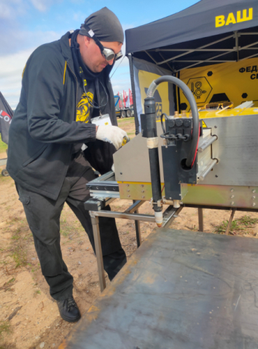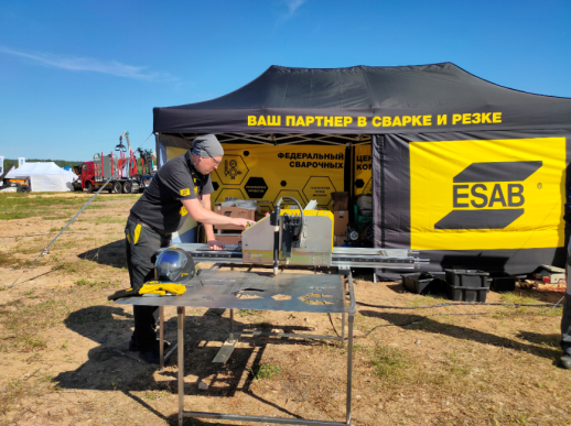 На мобильном сварочном столе специалисты компании провели мастер-класс для участников и посетителей чемпионата, продемонстрировали возможности высокотехнологичного оборудования компании, материалов для сварки и резки. Кроме этого, гости стенда могли ознакомиться с портативной машиной термической резки ESAB Crossbow.