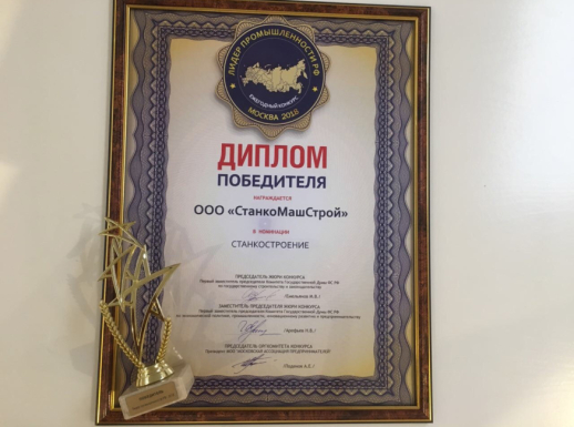 Компанию «СтанкоМашСтрой» жюри признало лидером промышленности в станкостроении. Генеральный директор предприятия Олег Кочетков получил диплом и памятный знак одним из первых в череде награждаемых.