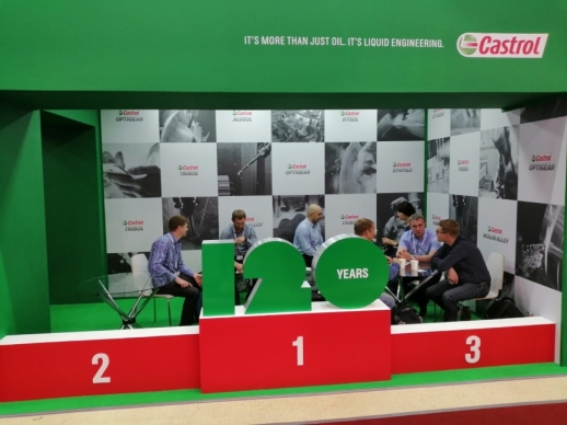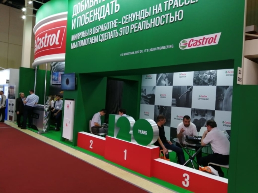 Выставочный стенд компании был посвящен сотрудничеству с Группой Renault, а болид команды Renault Sport Formula One Team стал его центральной композицией. Слоган на стенде Castrol гласит: «Микроны в обработке – секунды на трассе. Мы помогаем сделать это реальностью». В связи с тем, что болиды Формулы-1 подвержены экстремальным нагрузкам на трассе, каждая деталь суперкара и смазочные материалы должны быть высочайшего качества. На заводе Renault важными продуктами в операциях металлообработки являются смазочно-охлаждающие жидкости (СОЖ), пластичные смазки, масла для направляющих скольжения, редукторные масла компании Castrol, которые используются для высокотехнологичного производственного оборудования заводской команды.