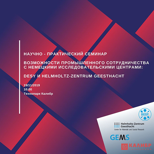 19 ноября в конференц-зале технопарка Калибр состоится научно-практический семинар, посвященный возможностям промышленного сотрудничества с немецкими исследовательскими центрами DESY и Helmholtz-Zentrum Geesthacht.